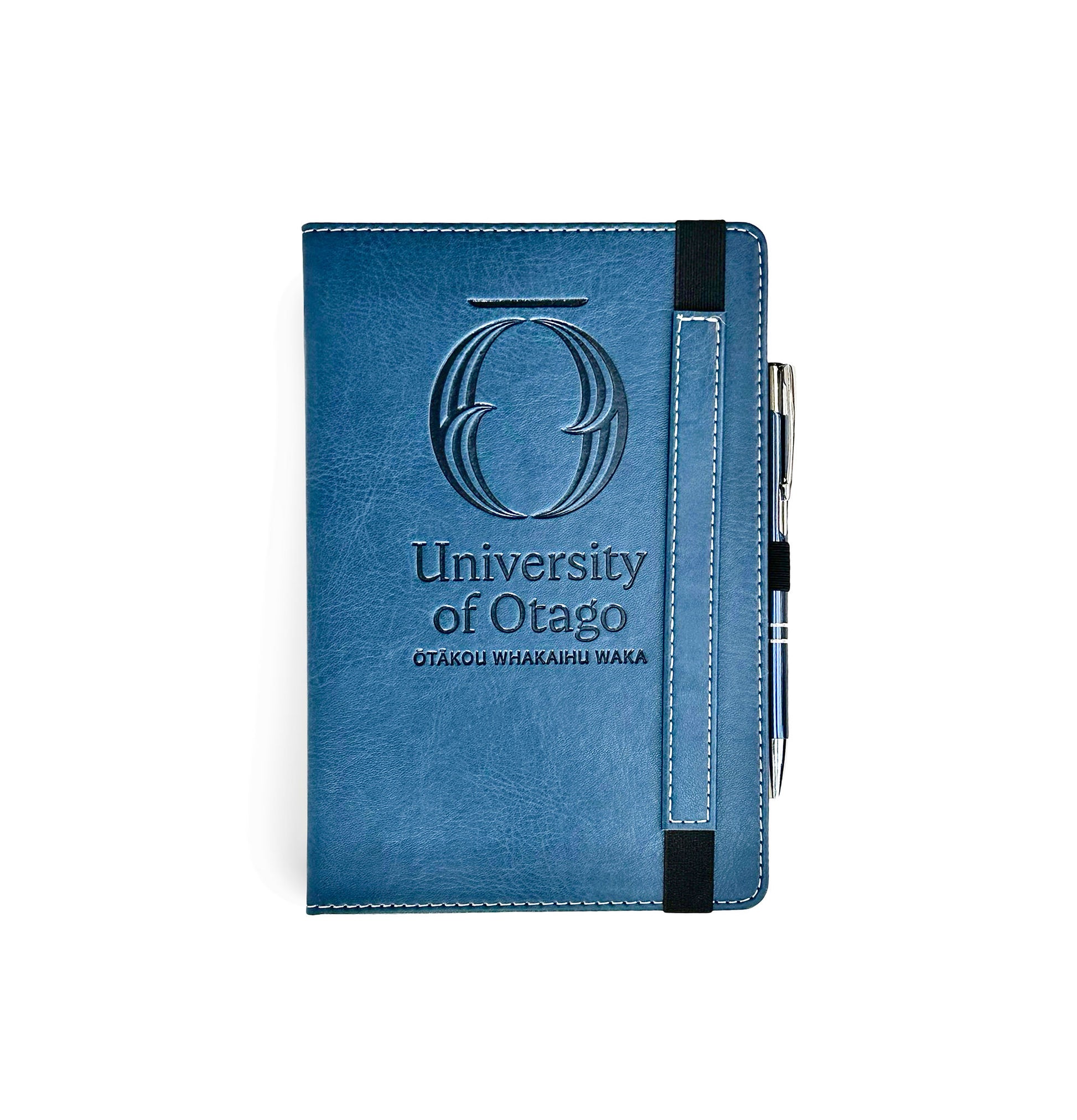 This 80 leaf (160 pages) hard cover notebook comes with a stylish aluminium pen in the elastic pen loop.