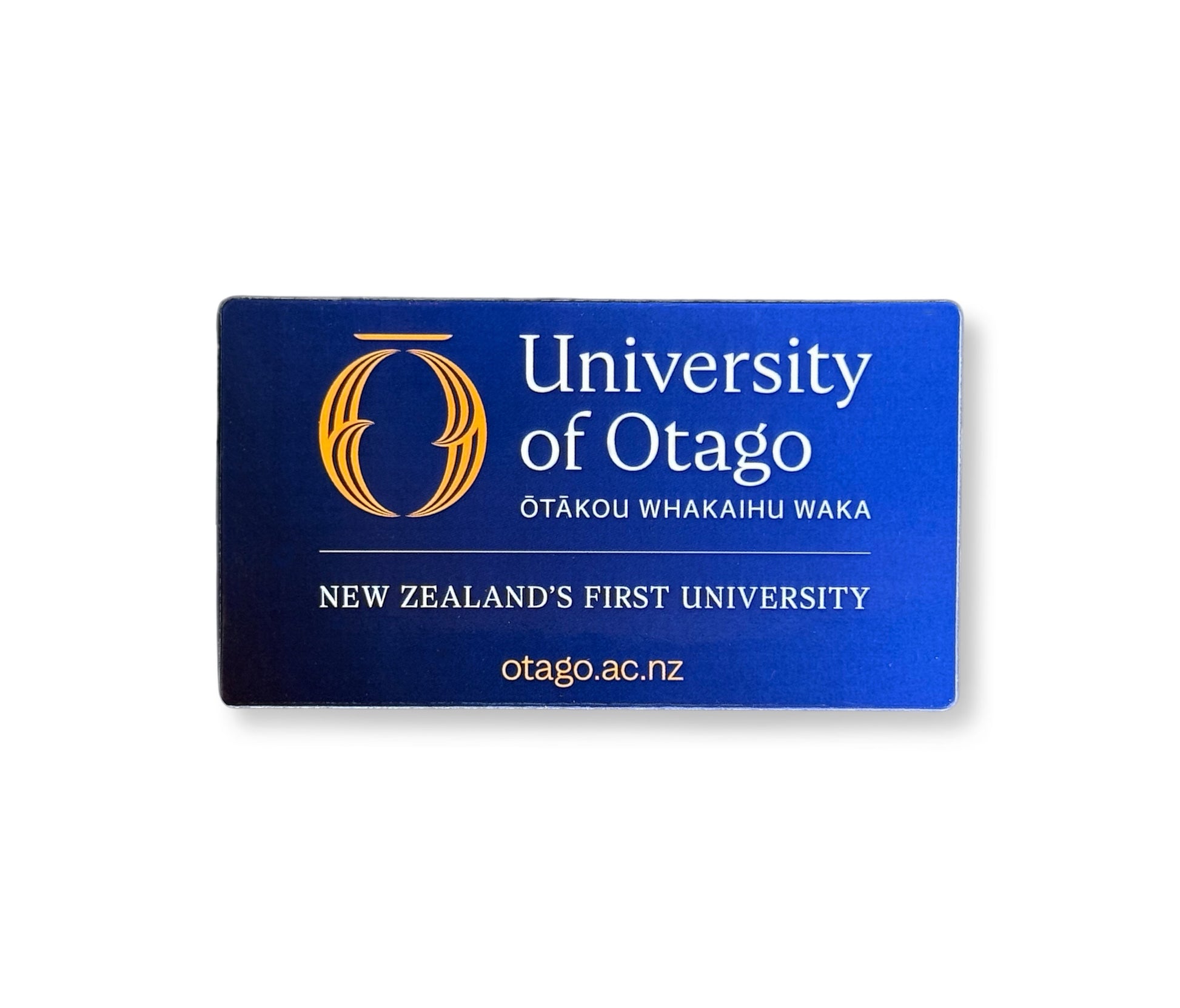 This magnet features the University of Otago's new tohu (symbol) and ikoa Māori (Māori name)