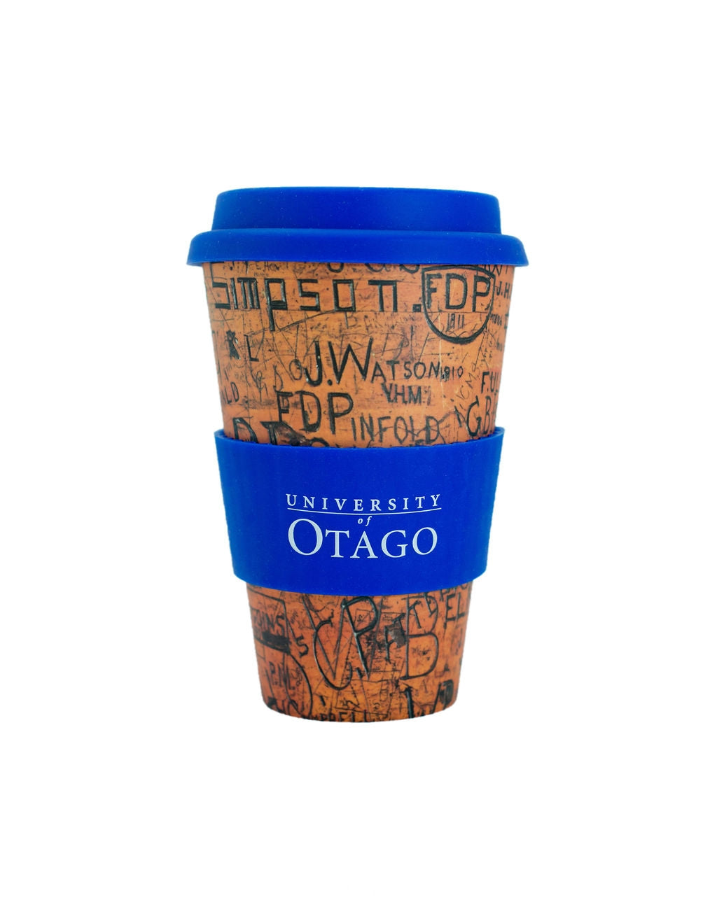 This reusable bamboo coffee cup pays homage to students from the University of Otago’s early years, who literally left their mark on campus.